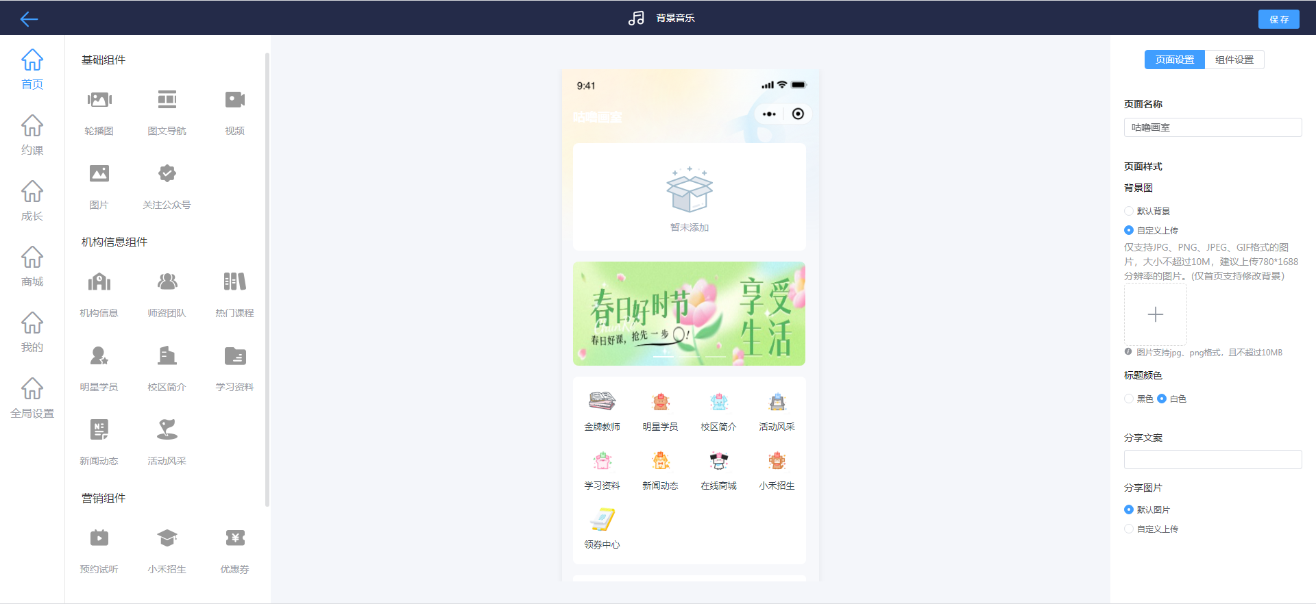 通过这种方式去装修自己的小程序,直接拉满家长对我们机构的第一印象