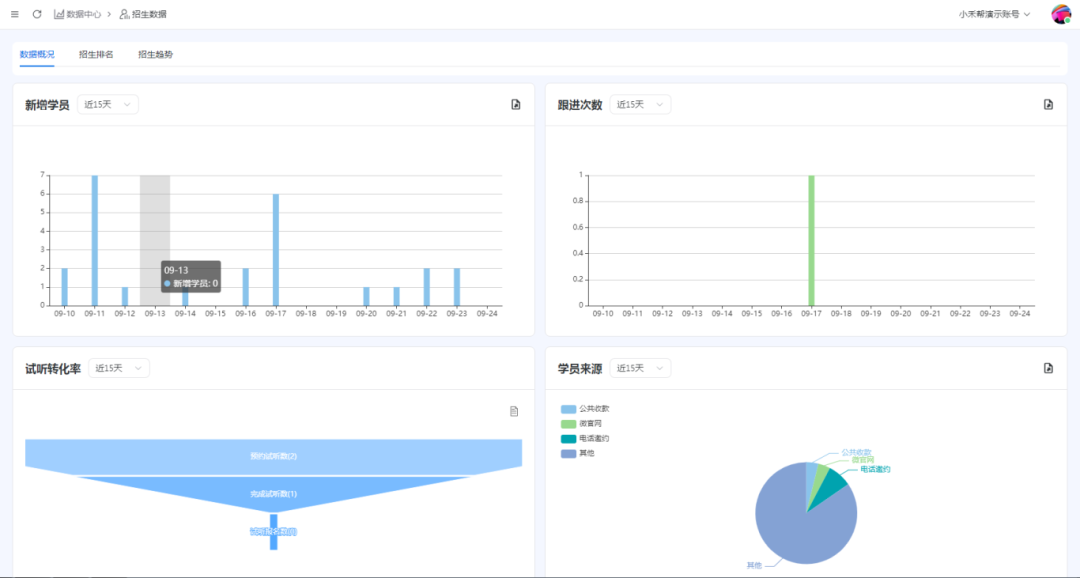 除了日常教务数据外,关于每日试听,转化这些也需要进行了解。