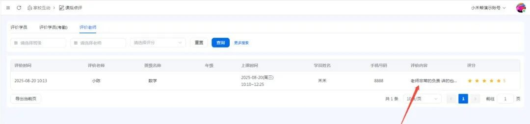 - 查看小禾帮系统中对老师的评价是否有异常,及时的进行处理
