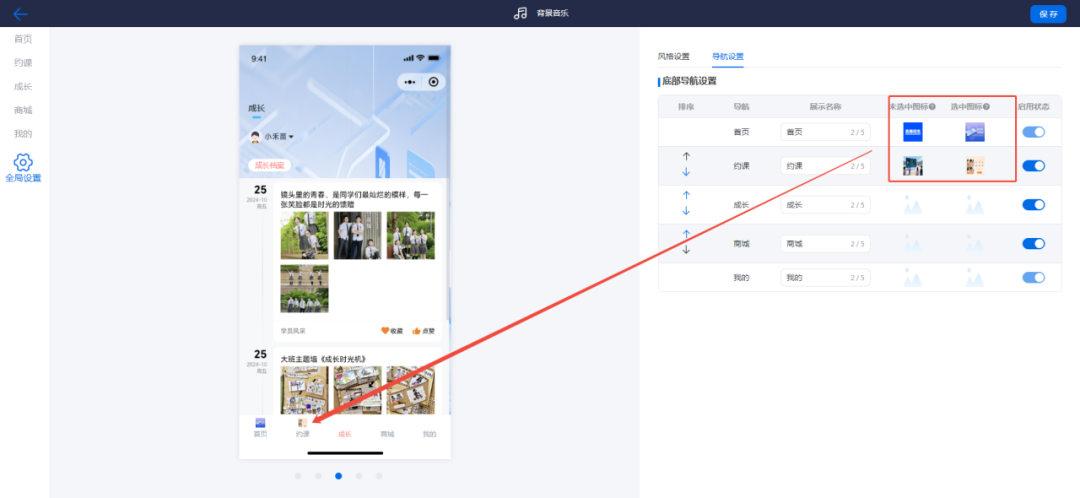 注:老师可对每个栏目名称设置两专属个图标,分别为未点击时状态和点击时状态。