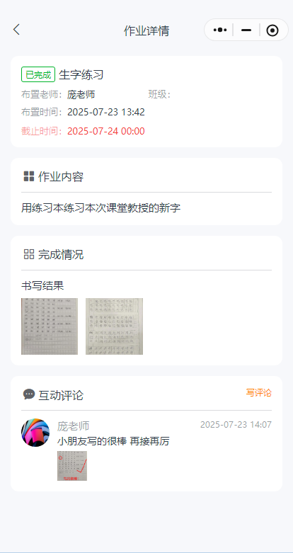 孩子上完课后,可以进行针对性的进行作业布置,并对作业进行画圈点评,让家长更直观的感受到孩子的学习效果。