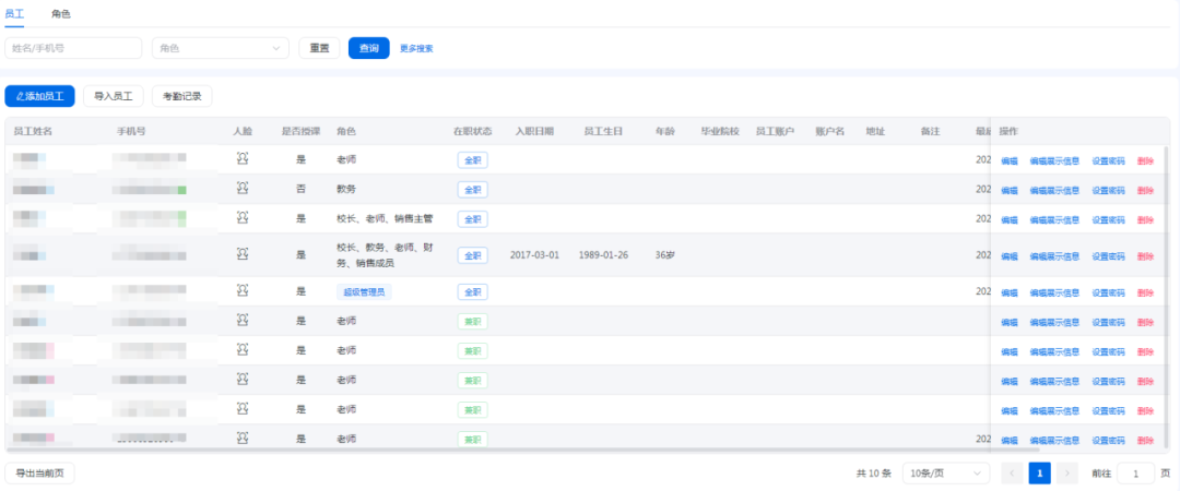 3.所有员工独立登录,角色权限精准分配,老师职责定位更清晰。