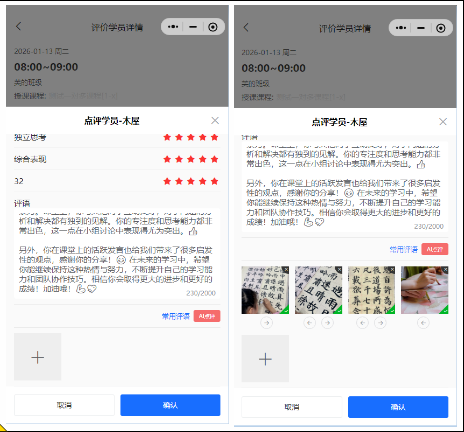 暑期孩子多,一个一个点评太耗费时间了,借助小禾帮AI点评,只需要输入关键词就可以自动化生成评语,让课堂反馈变得更高效