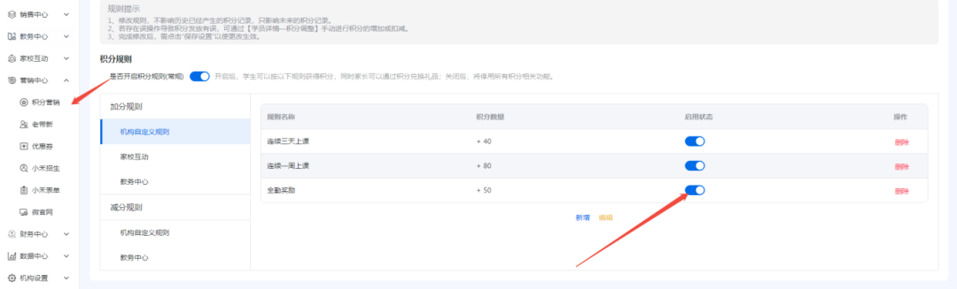 建立完善的学员积分体系,不同的体系可以兑换不同的奖励,以此来激励学员按时出勤,提高学员的出勤率