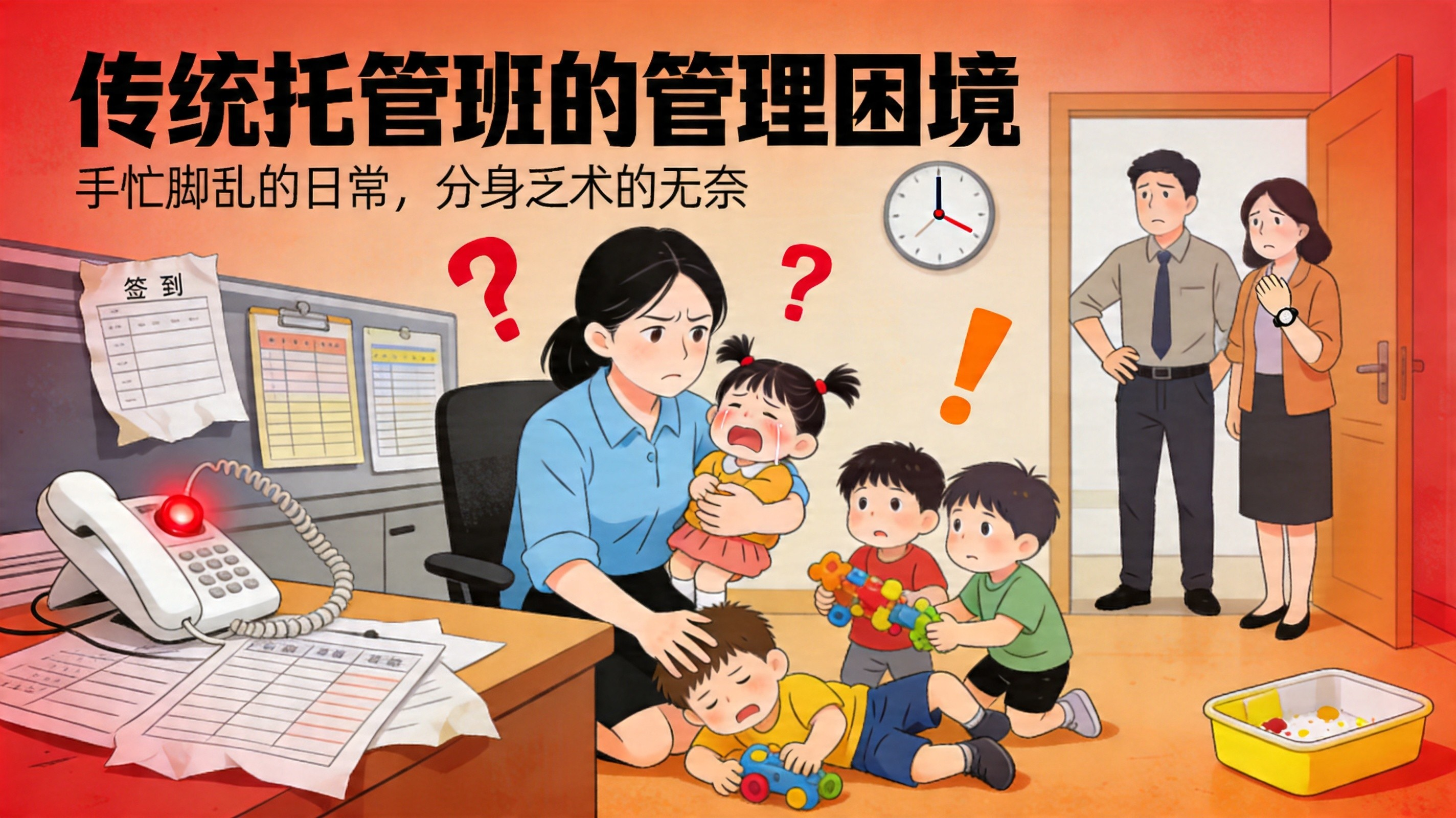 • 管理事务杂:接送、签到、用餐、作业辅导……各种事情繁琐