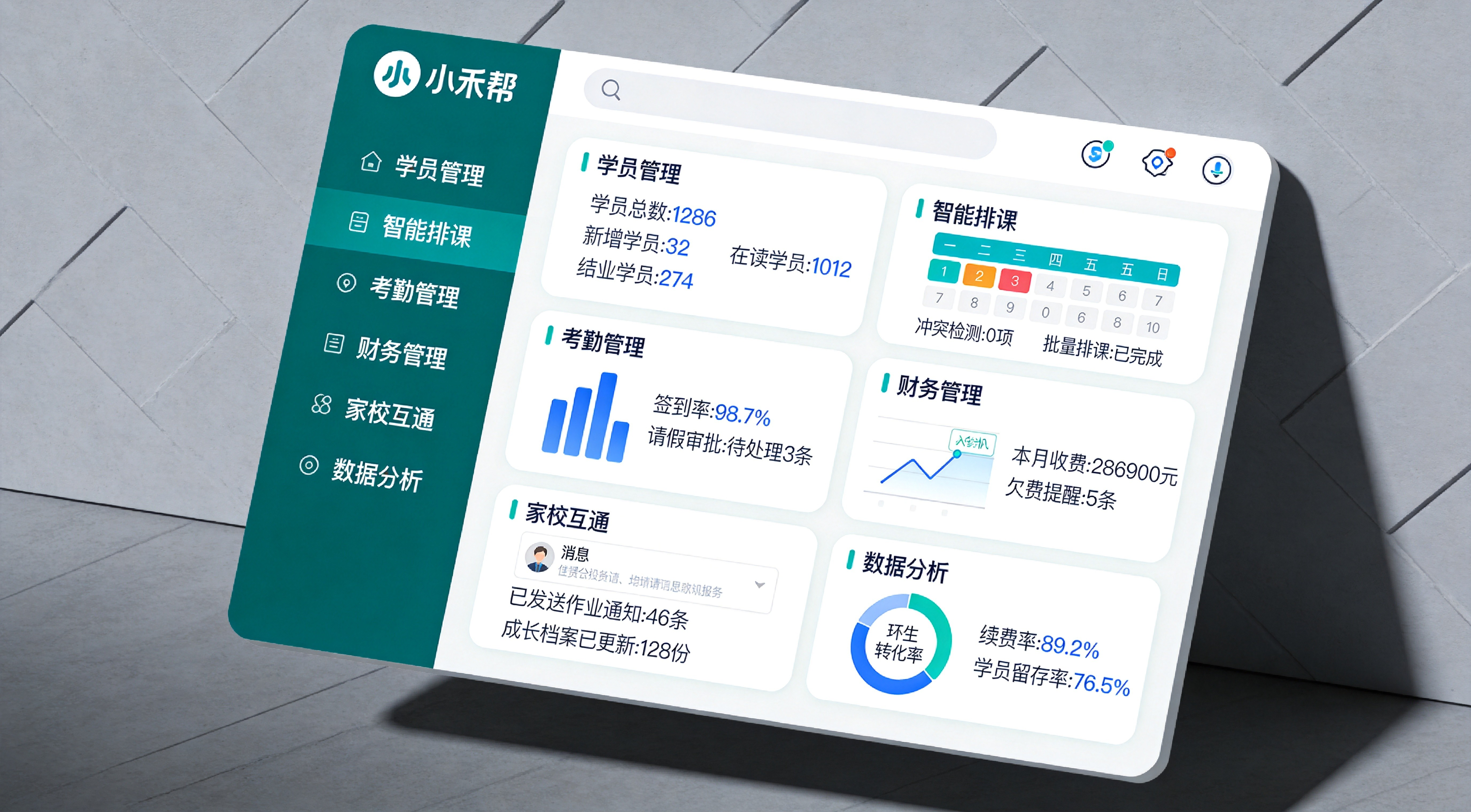 小禾帮的功能覆盖教培机构运营的各个环节: