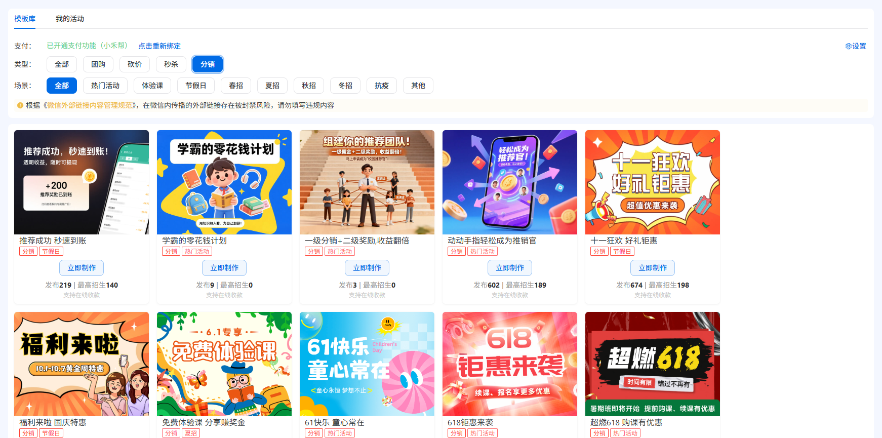 小禾帮分销裂变功能:让家长成为你的招生员