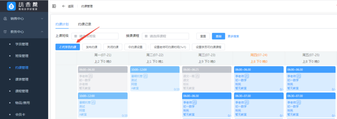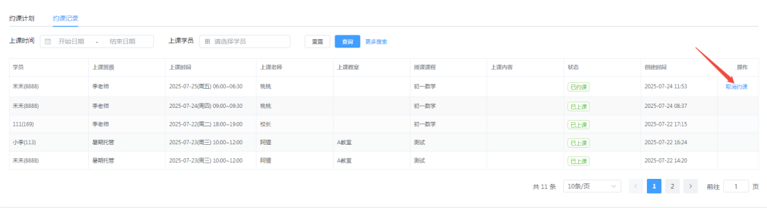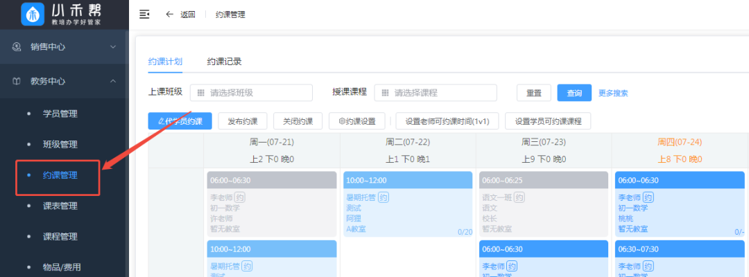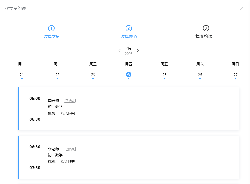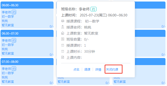新增多项搜索条件,老师可按照搜索条件快速定位约课课节
