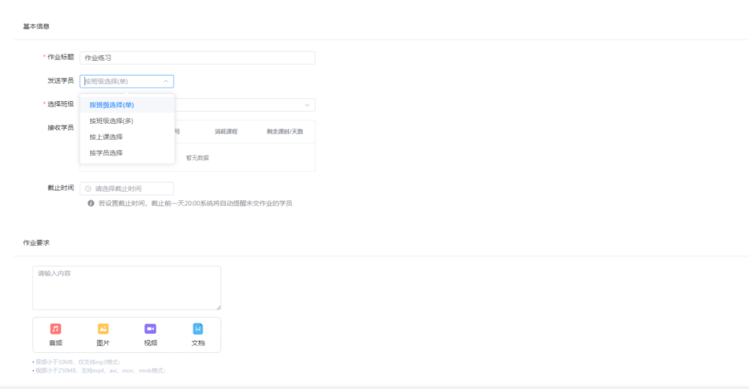 老师在线布置课后作业,可按照班级或者个人进行作业推送
