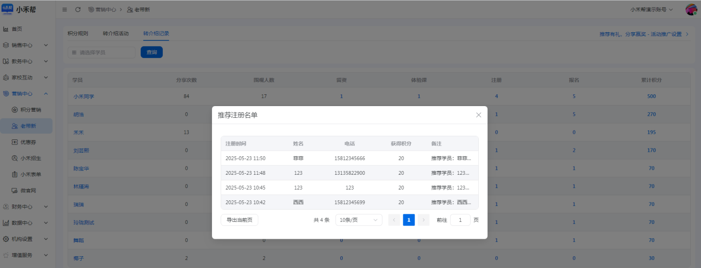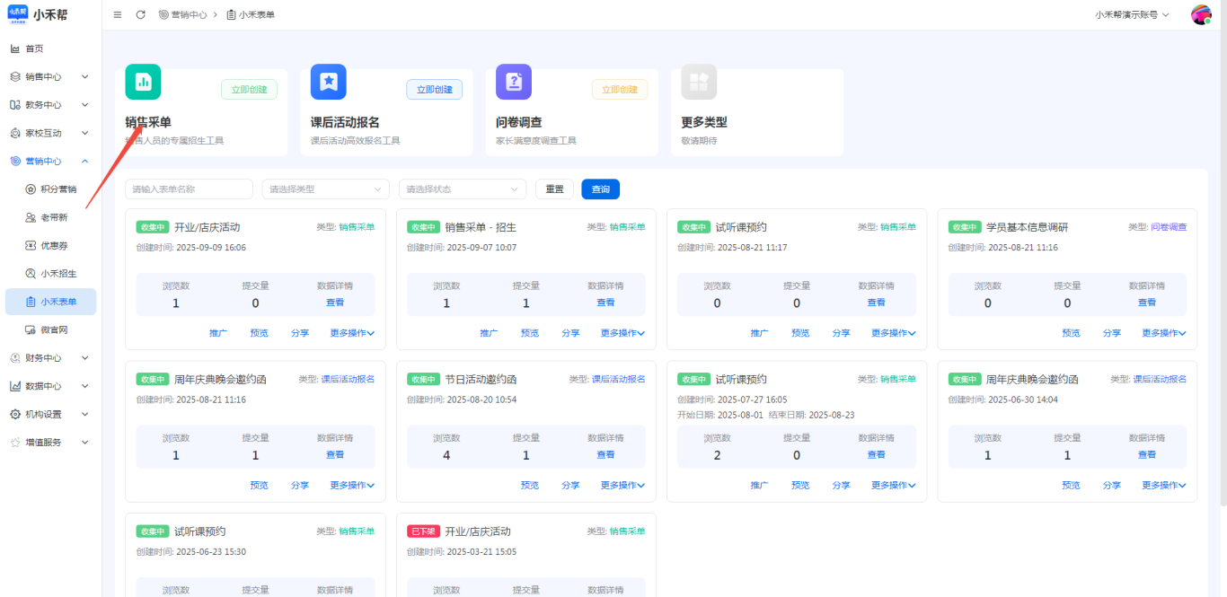 通过上述的营销活动获得线索后,转化也是一个重要的阶段,小禾帮为老师们贴心准备了CRM功能。