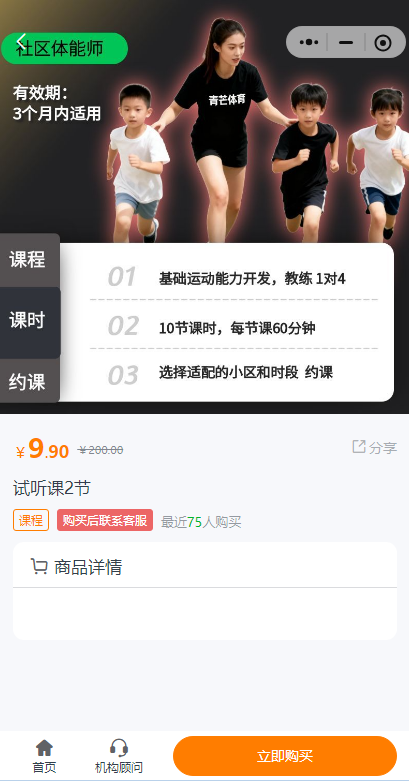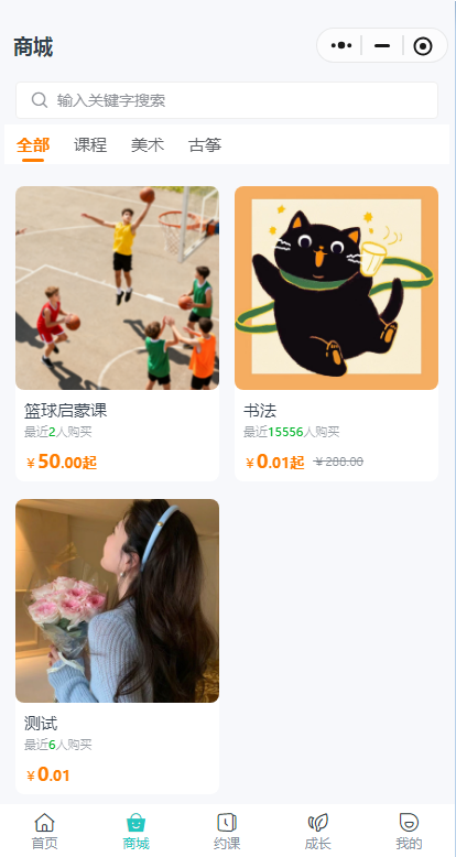 线上商城:课程套餐、教材教具、会员卡券,线上直接购买核销。