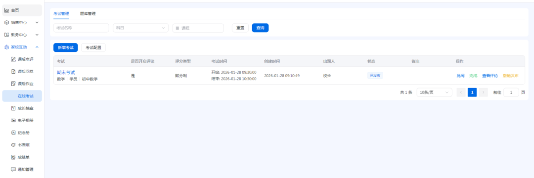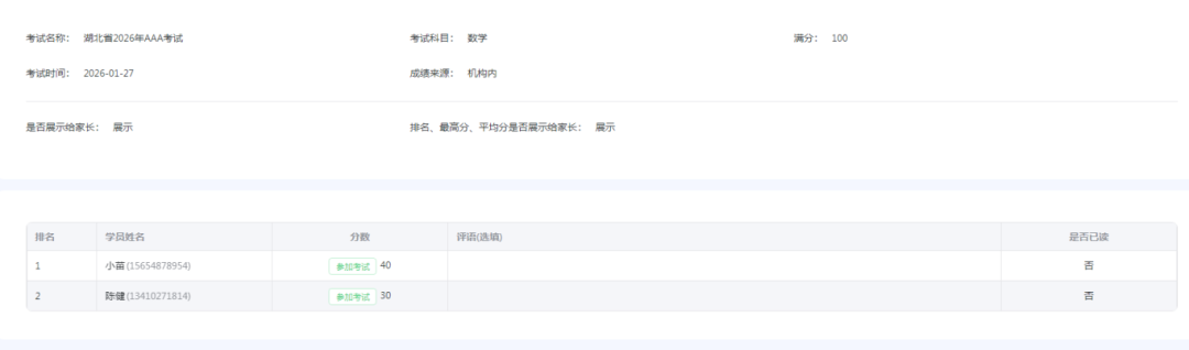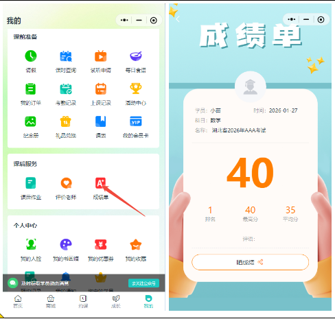 考试结束后,老师手动操作生成成绩单,学员可通过小程序直接进行查询