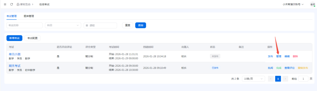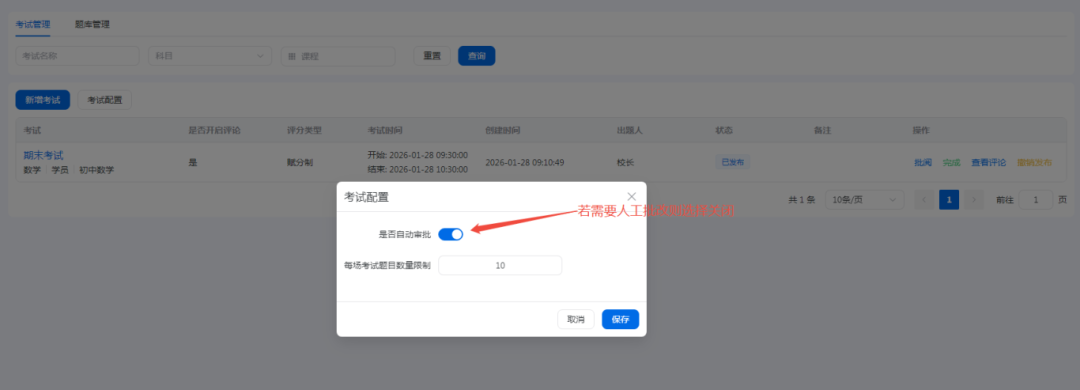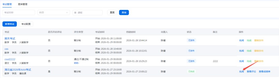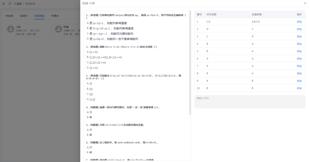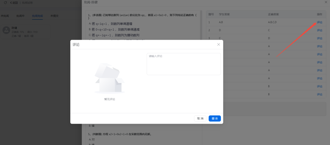 当学员提交试卷后,系统会自动进行批阅,老师也可以进行二次进行批阅