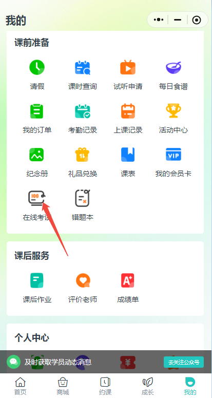 注:家长需提前关注小禾帮或者您机构绑定的公众号才可接收到消息提醒